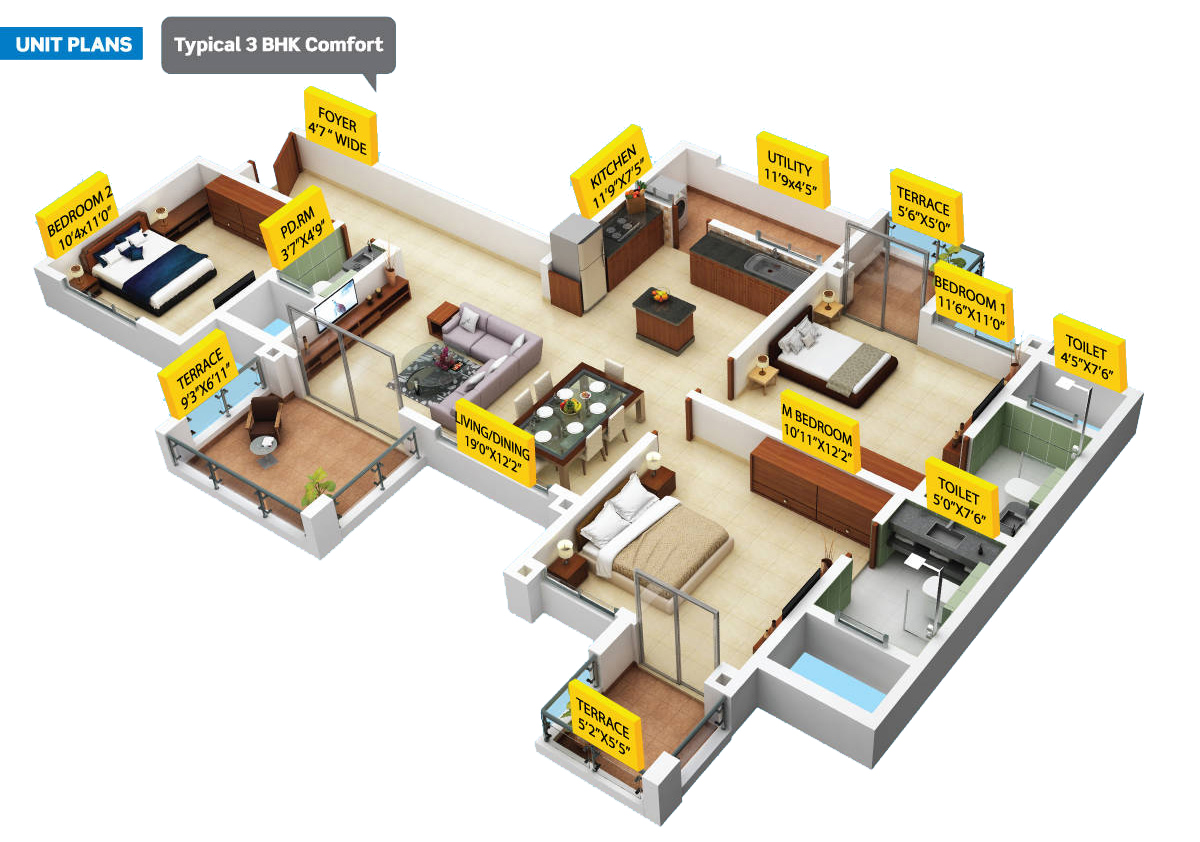Purva Silversands offers a wide range of living options from compact efficiently designed 1 BHK layouts to spacious 2 & 3 BHK residences. Each home is planned to ensure: